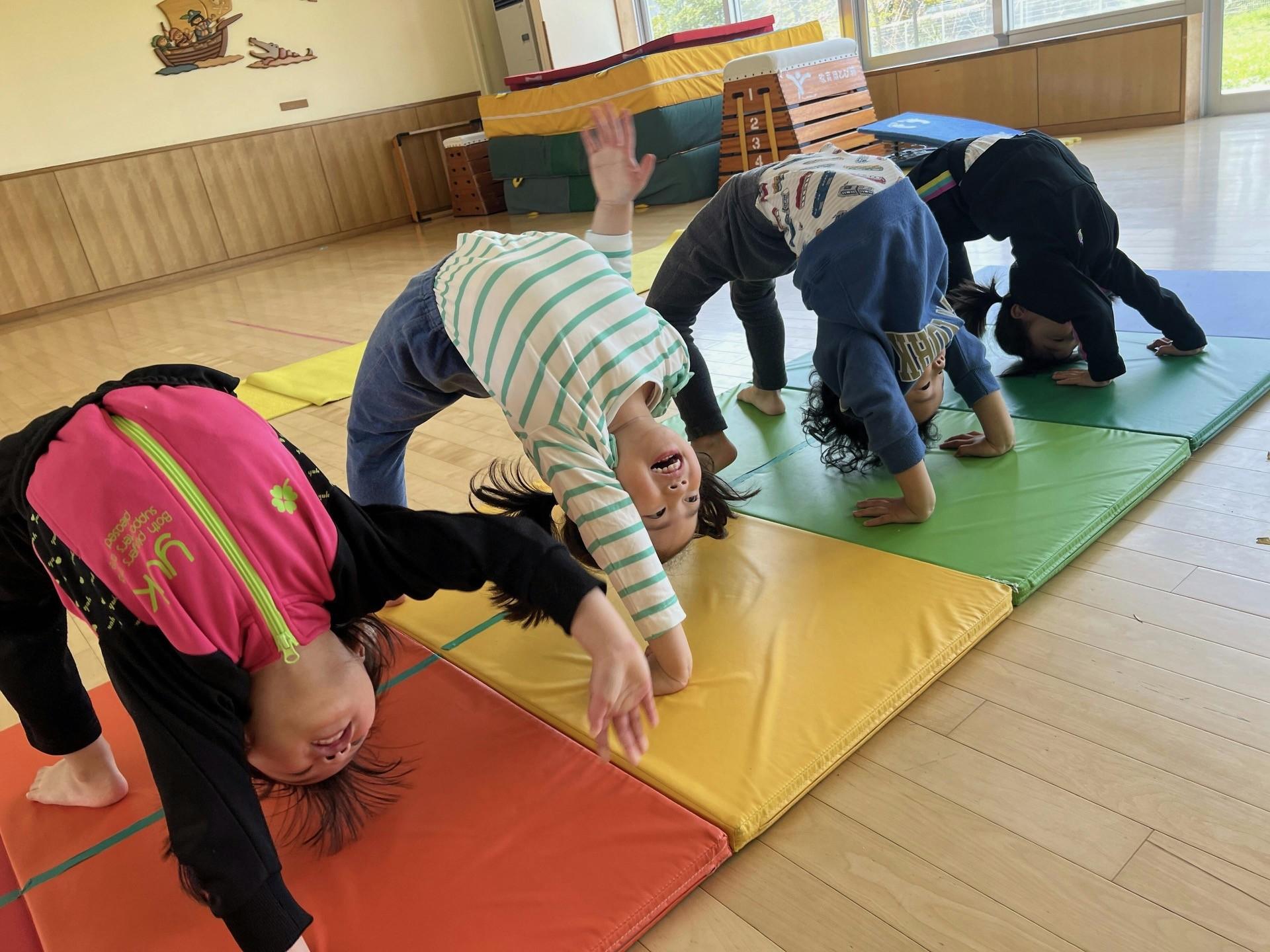 本園はヨコミネ式を導入しています。ヨコミネ式では運動神経は6歳までに大きく発達すると言われており、この時期に体をバランスよく動かすことで、走力・柔軟性・体操といった「体の力」を育みます。